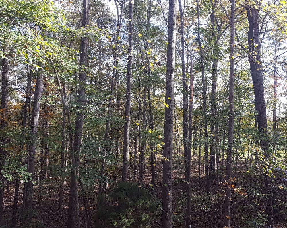 We sleep on the second floor in a large room, bookshelves on one end and, on the other, a large window that covers most of the wall. It faces southeast and captures early morning sun. Through the branches, especially in the fall and winter, a vista unfolds of a field. I can see this easily with a glance from my bed.